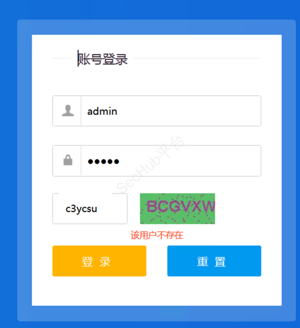 用户名枚举:用户名错误和正确时,前端回显的报错信息不同,如下图所示。