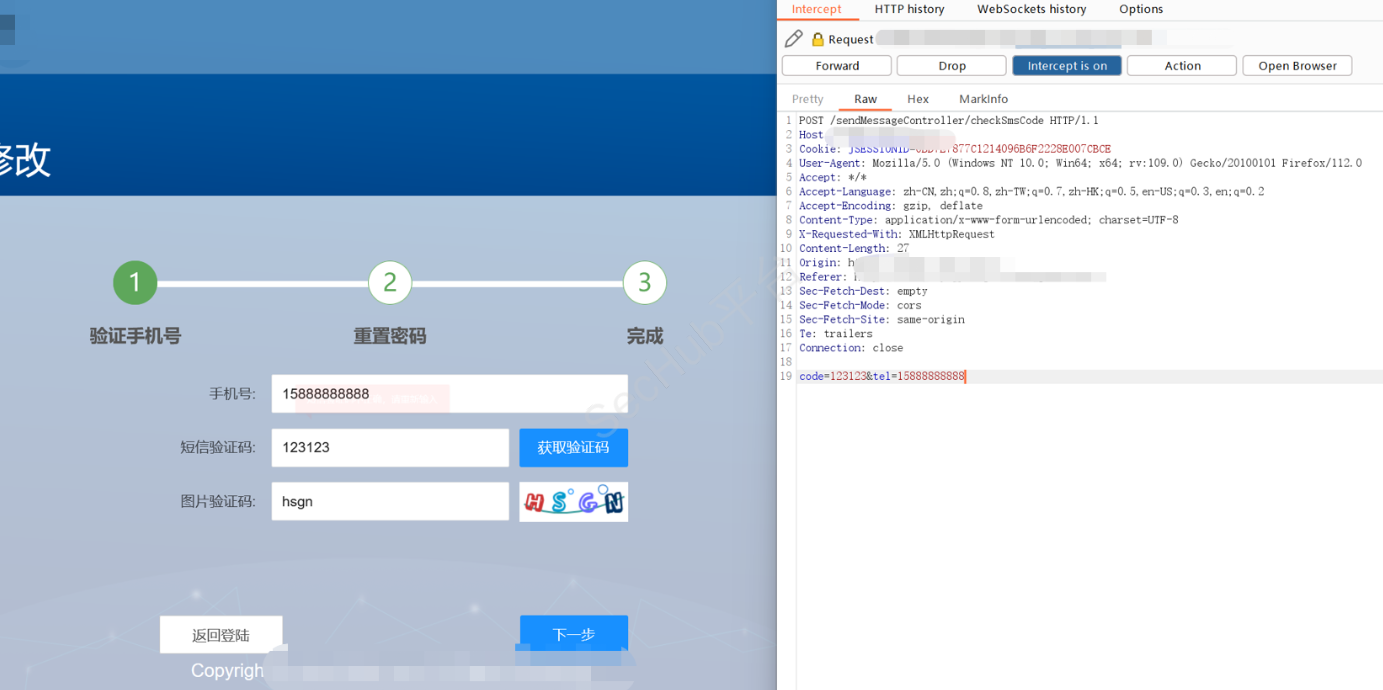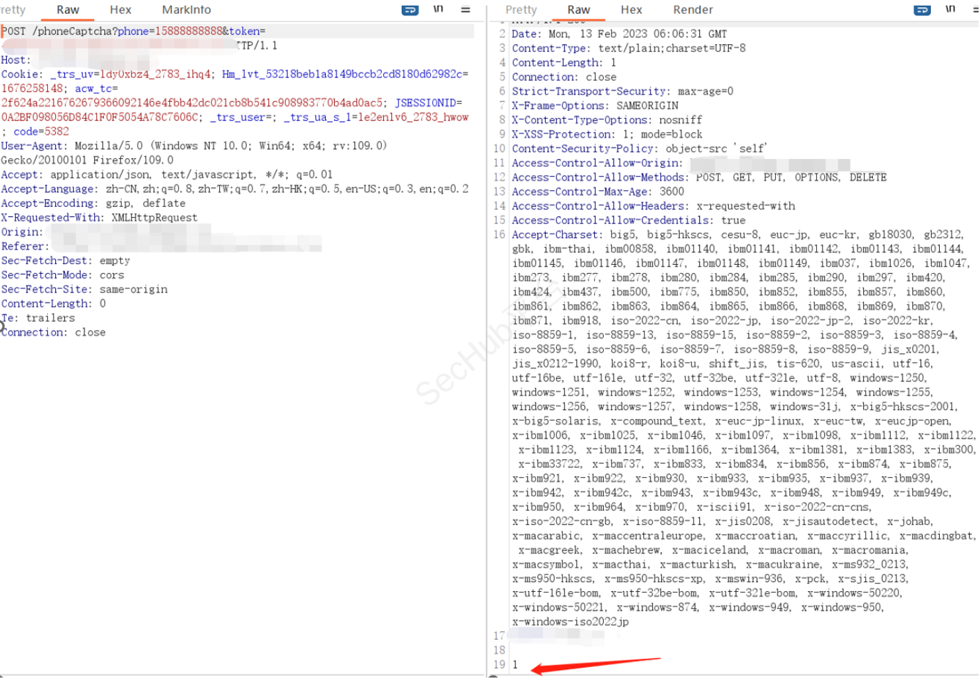 当我们遇到请求包中携带验证码的时候 code=123123&tel=1588888888&varcode=hsgn,可以尝试将验证码的值删除 code=123123&tel=1588888888&varcode=