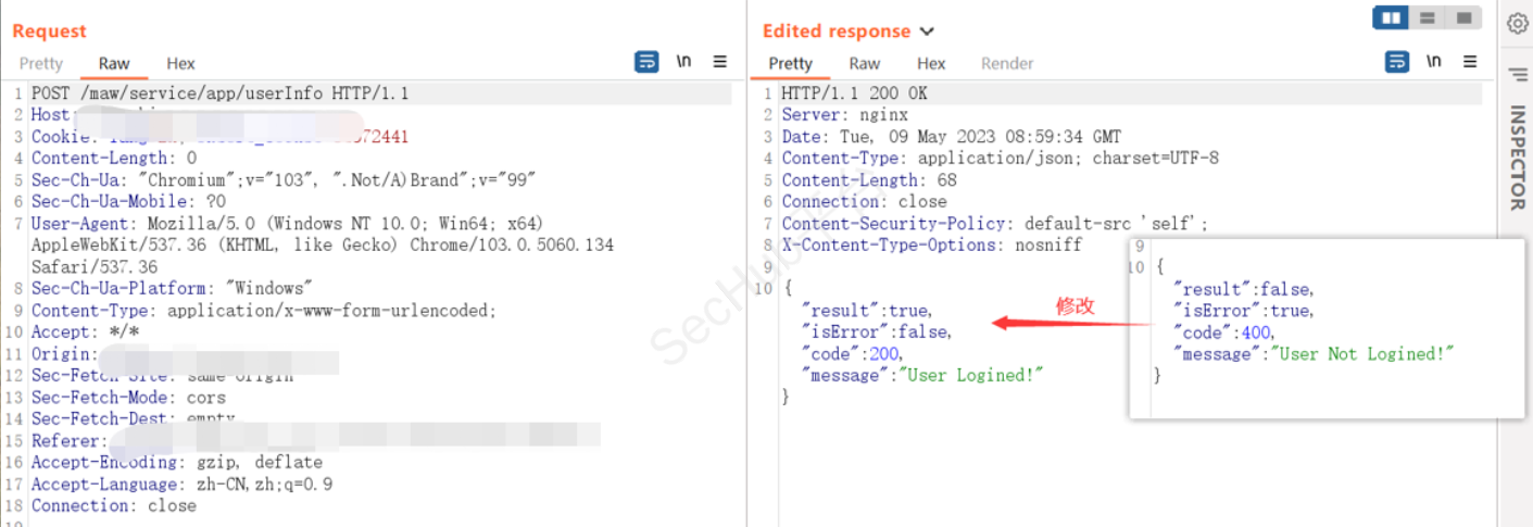 登录页面抓取响应包后,可以修改false为true,0改为1,code 400 改成200 等等,总之就是修改返回包为登录成功时的返回包即可绕过